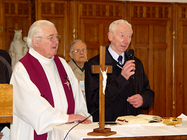 Messe Selon la tradition, la journée a débuté par une messe à la chapelle de l'Institut, célébrée cette année encore par le Chanoine René Le Bars, ancien Curé de l'église Saint-Pierre, actuellement Chanoine du Chapitre de la Cathédrale de Chartres. Jean Loriot animait la messe avec son orgue portatif et Claire Rey dirigeait les chants. A l'issue de la messe, le froid, particulièrement vif, a dissuadé les participants de se réunir sur les marches de la villa pour les traditionnelles photos. Ceux-ci ont préféré se blottir immédiatement au chaud dans le réfectoire. Assemblée Générale Introduction du Président Devant la cinquantaine de personnes rassemblées dans le réfectoire de l'Institut,