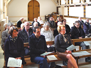 Messe Selon la tradition, la journée a débuté par une messe à la chapelle de l'Institut, célébrée cette année encore par le Chanoine René Le Bars, ancien Curé de l'église Saint-Pierre, actuellement Chanoine du Chapitre de la Cathédrale de Chartres. Jean Loriot animait la messe avec son orgue portatif et Claire Rey dirigeait les chants. A l'issue de la messe, le froid, particulièrement vif, a dissuadé les participants de se réunir sur les marches de la villa pour les traditionnelles photos. Ceux-ci ont préféré se blottir immédiatement au chaud dans le réfectoire. Assemblée Générale Introduction du Président Devant la cinquantaine de personnes rassemblées dans le réfectoire de l'Institut,